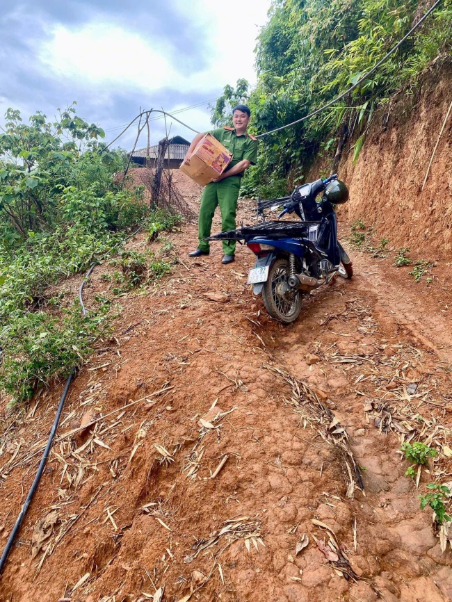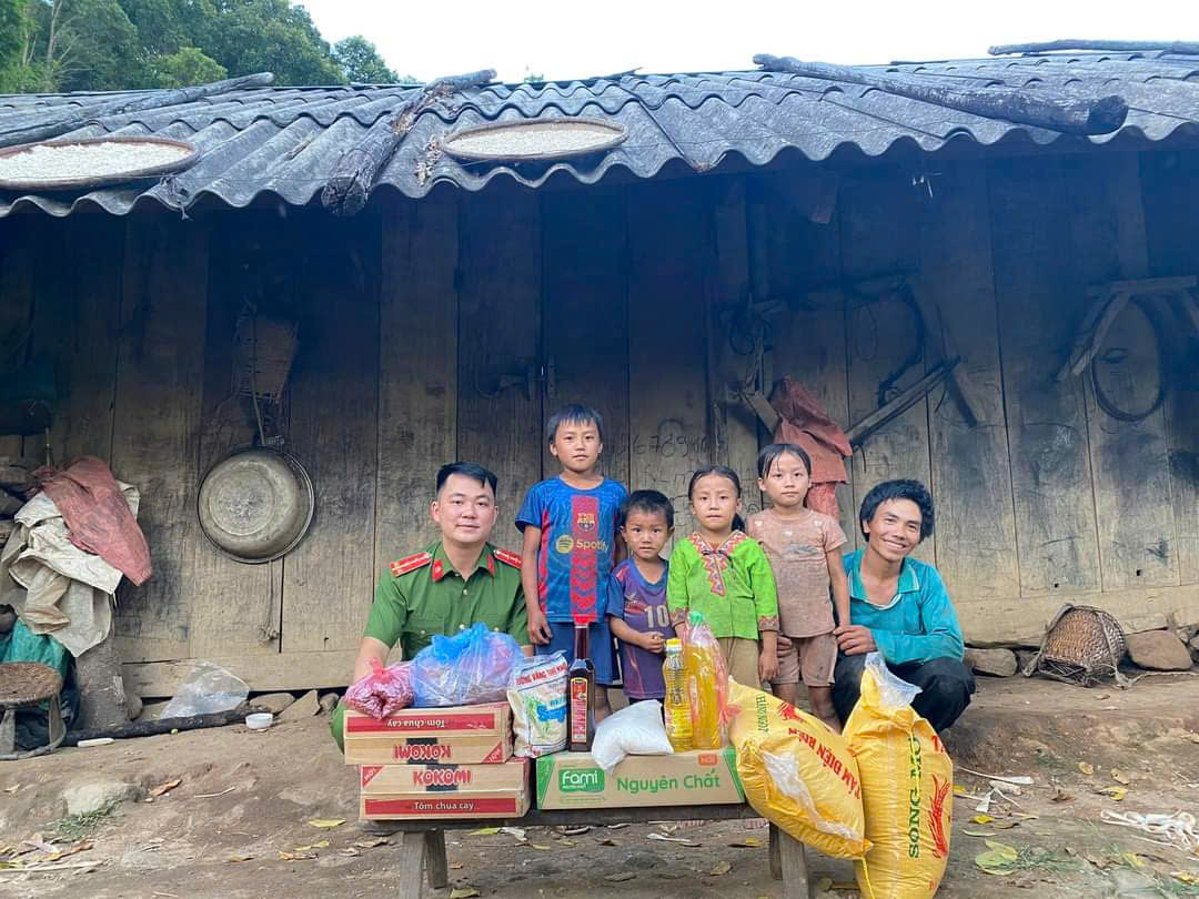 Đại uý Cà Văn Minh tận tay mang thực phẩm, nhu yếu phẩm cho các con