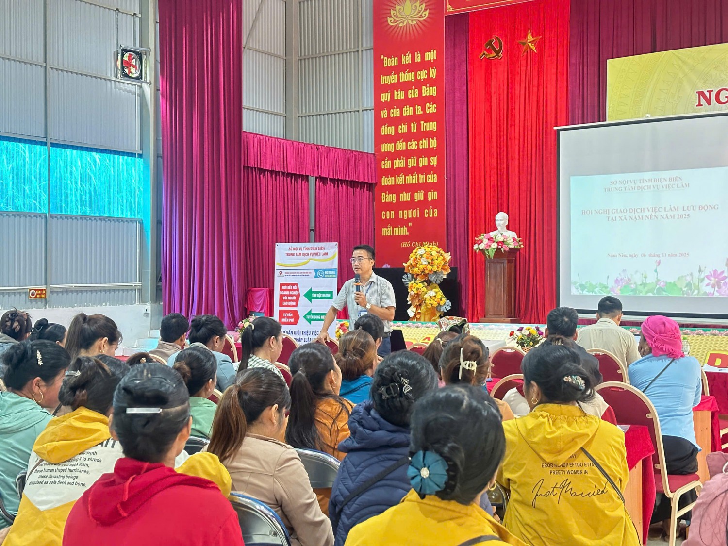 Từ ngày 03/11/2025 đến hết ngày 07/11/2025, Trung tâm Dịch vụ việc làm, Sở Nội vụ tỉnh Điện Biên phối hợp với UBND các xã Mường Tùng, Pa Ham, Mường Pồn, Nậm Nèn, Nà Tấu, Mường Ảng tổ chức 14 Hội nghị thông tin, tuyên truyền chính sách, tư vấn, hướng nghiệp và giới thiệu việc làm cho trên 818 người lao động.