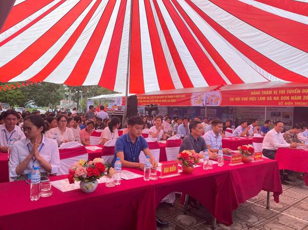 Khai mạc Hội chợ việc làm tại xã Na Son có sự tham dự của đồng chí Trần Thanh Kiên - Bí thư Đảng ủy, Chủ tịch HĐND xã, đồng chí Quàng Văn Phong - Chủ tịch UBND xã, đại diện lãnh đạo Uỷ ban Mặt trận Tổ quốc xã, lãnh đạo các phòng, ban, trung tâm, trường THPT, các đoàn thể chính trị- xã hội xã, trưởng các thôn, bản. Đây là minh chứng rõ nét cho sự vào cuộc, sự quan tâm của cấp uỷ, chính quyền trong vấn đề lao động, việc làm tại địa phương.