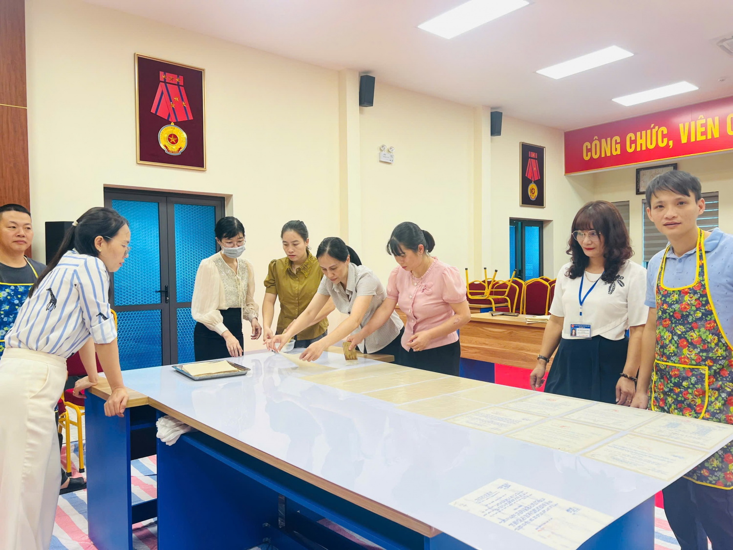 Nhằm khắc phục tình trạng khối tài liệu có nguy cơ bị hủy hoại, đồng thời tiếp tục phát huy hiệu quả phục vụ tốt hơn trong công cuộc xây dựng phát triển kinh tế - xã hội của tỉnh; hàng năm, Trung tâm Lưu trữ lịch sử đã xây dựng kế hoạch và phối hợp triển khai thực hiện công tác bồi nền tài liệu giấy bằng phương pháp thủ công. Năm 2025 Trung tâm đã bồi nền được 3.740 trang tài liệu khổ giấy A4 chất liệu là giấy poluya đã bị hư hỏng, xuống cấp nghiêm trọng thuộc Phông Ban Tổ chức Chính quyền tỉnh Lai Châu (cũ) giai đoạn từ năm 1965 đến 1969.