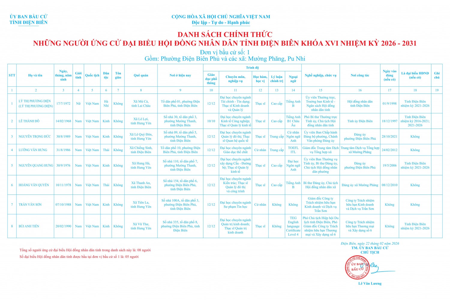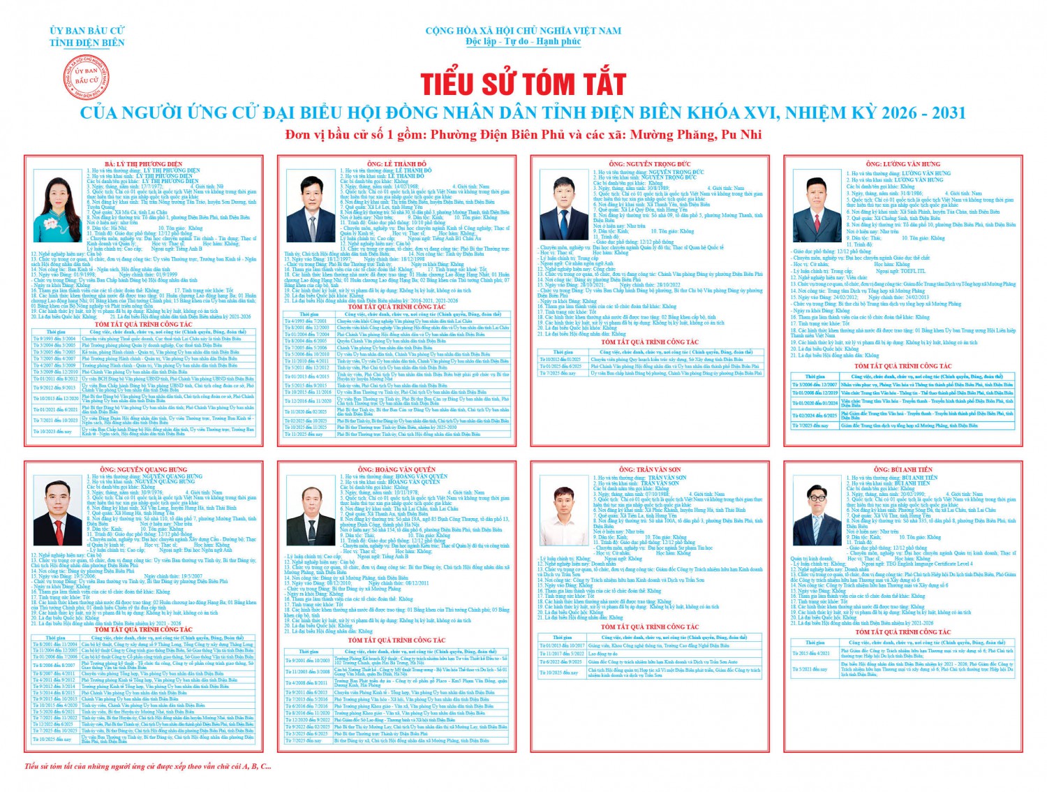 UBBC tỉnh Điện Biên công bố tiểu sử tóm tắt của người ứng cử đại biểu HĐND tỉnh Điện Biên khóa XVI nhiệm kỳ 2026-2031