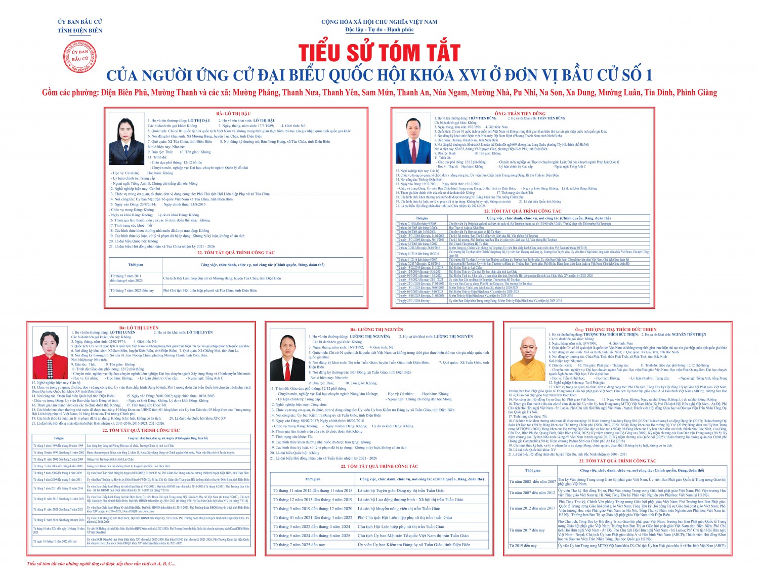 UBBC tỉnh Điện Biên công bố tiểu sử tóm tắt của người ứng cử đại...