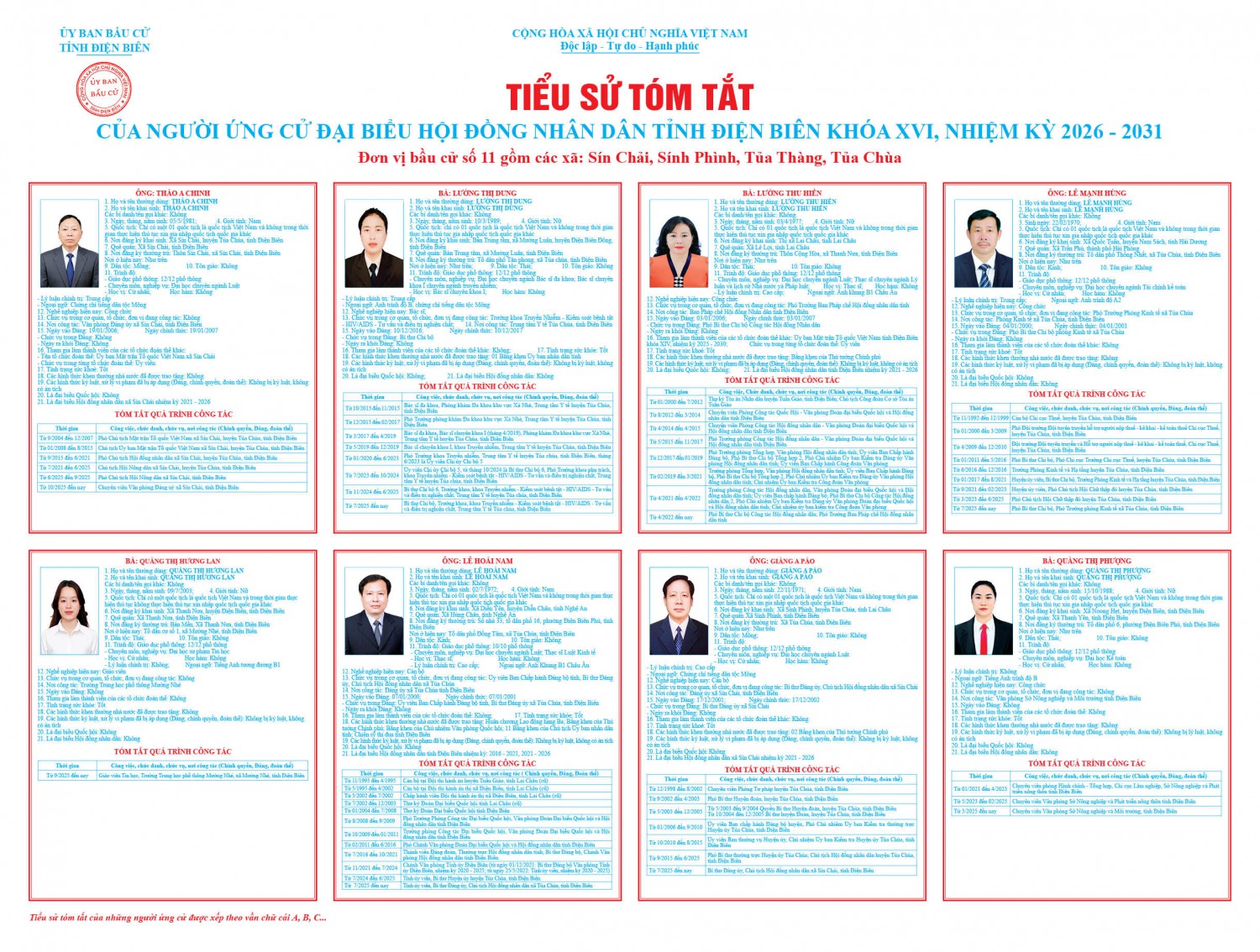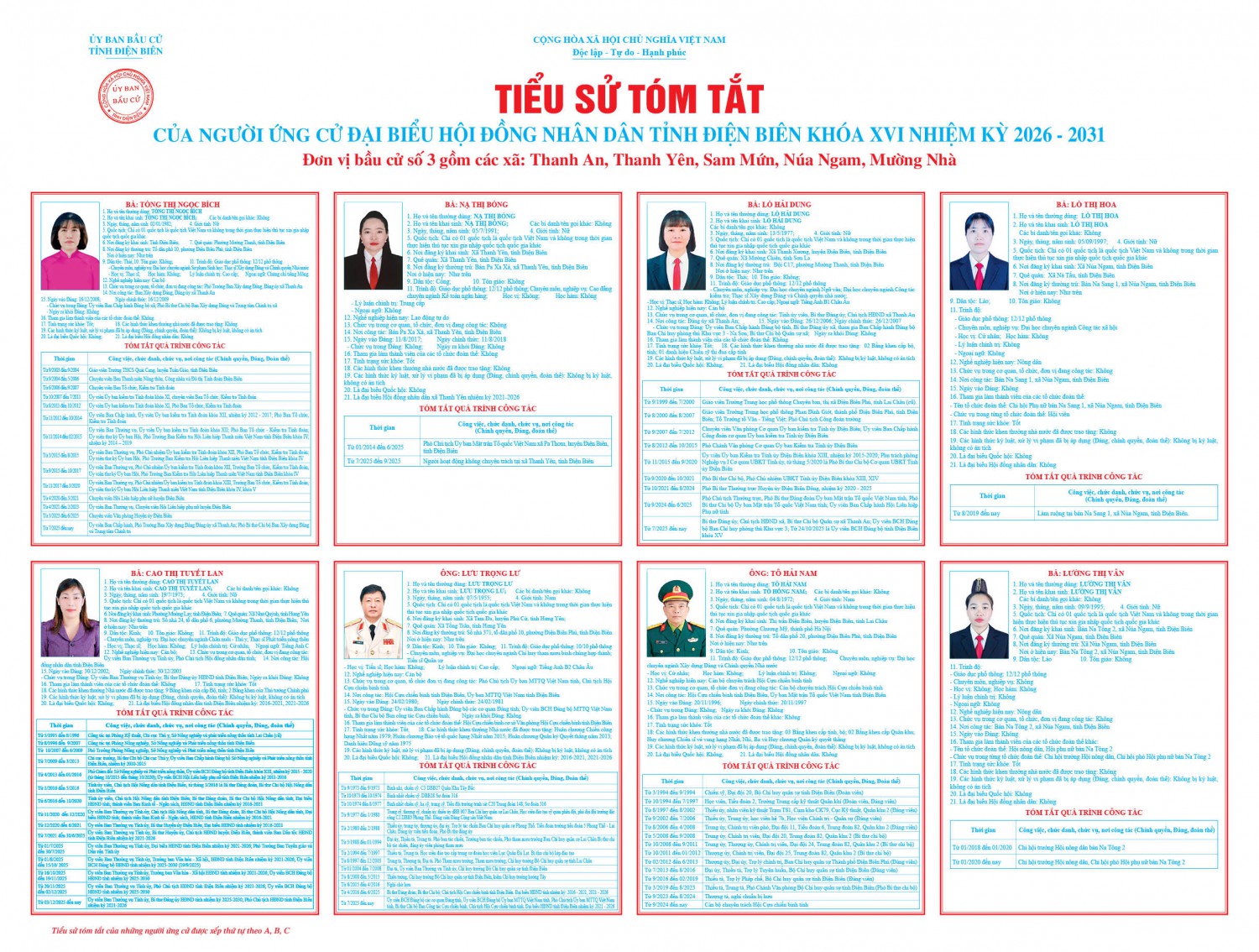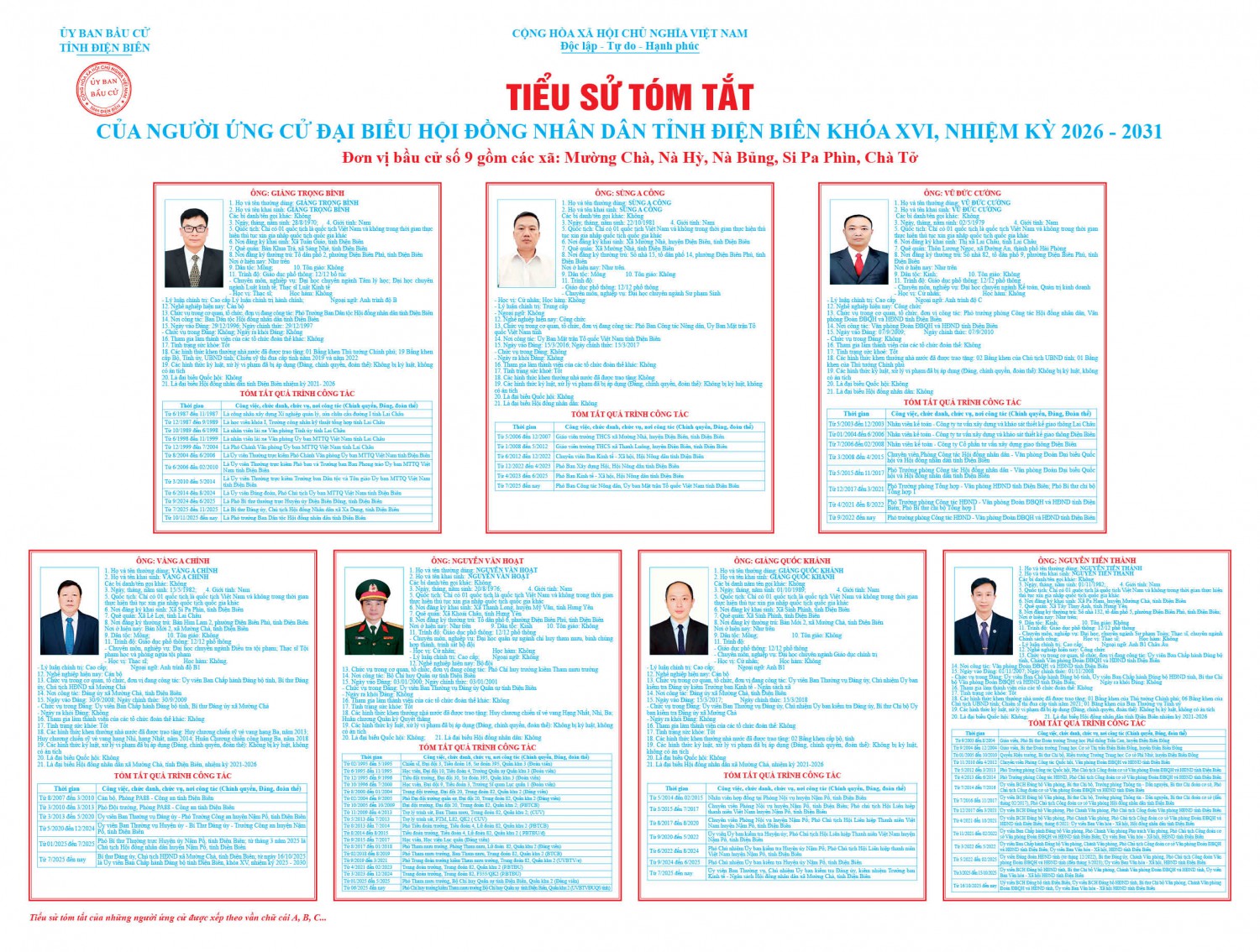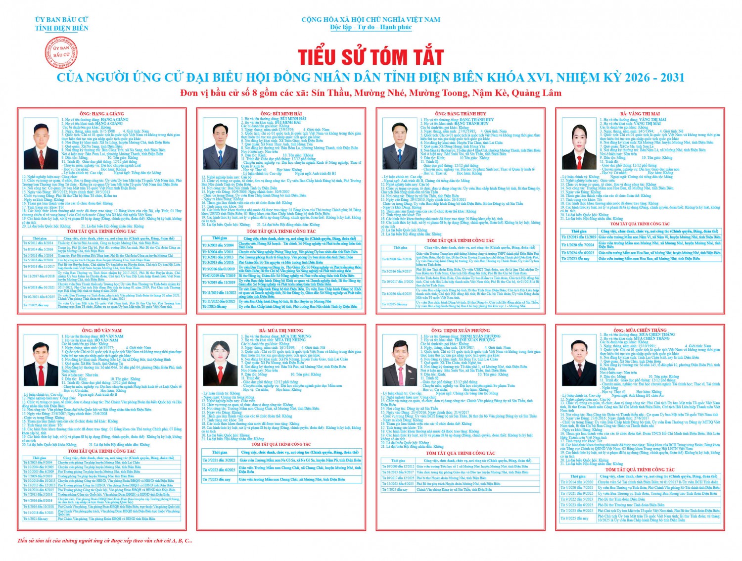 Trang Thông tin điện tử Sở Nội vụ trân trọng đăng tải tiểu sử tóm tắt của người ứng cử đại biểu HĐND tỉnh Điện Biên khóa XVI nhiệm kỳ 2026-2031 theo từng đơn vị bầu cử để cử tri theo dõi, tìm hiểu và thực hiện quyền bầu cử theo quy định.