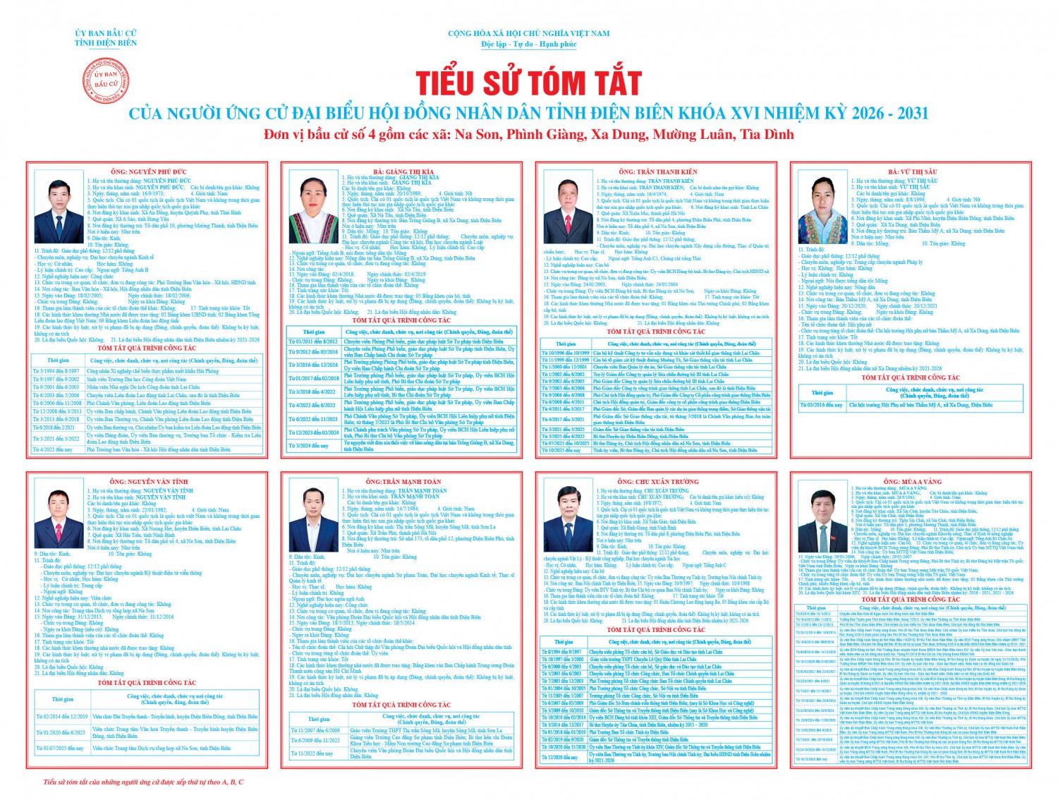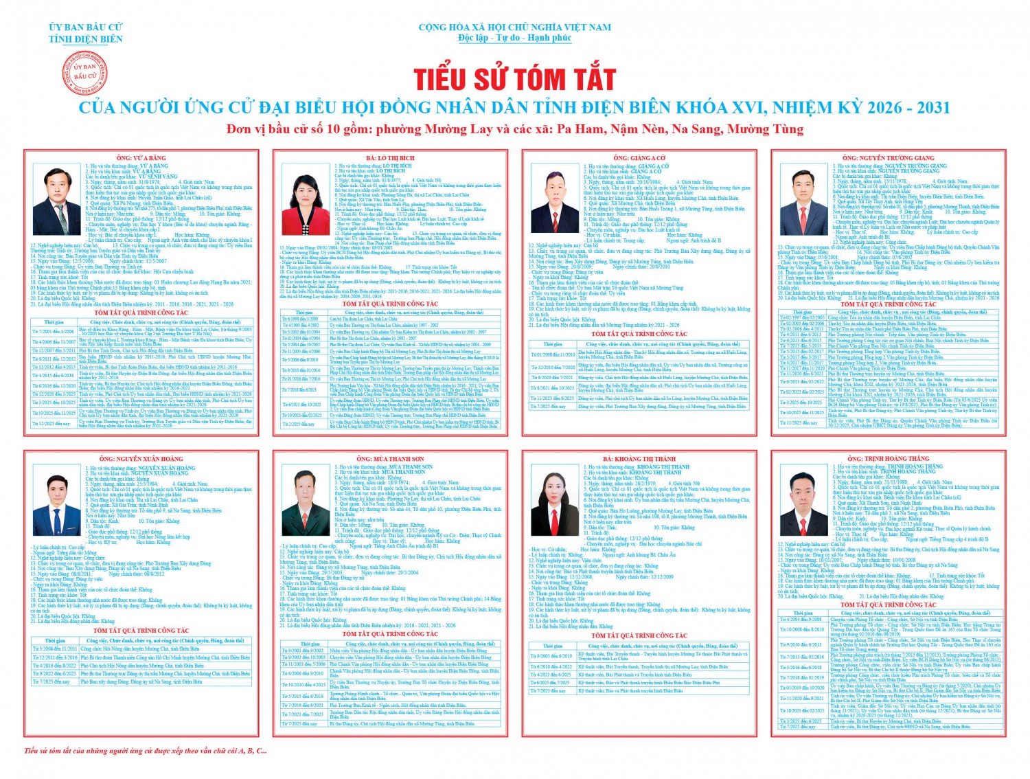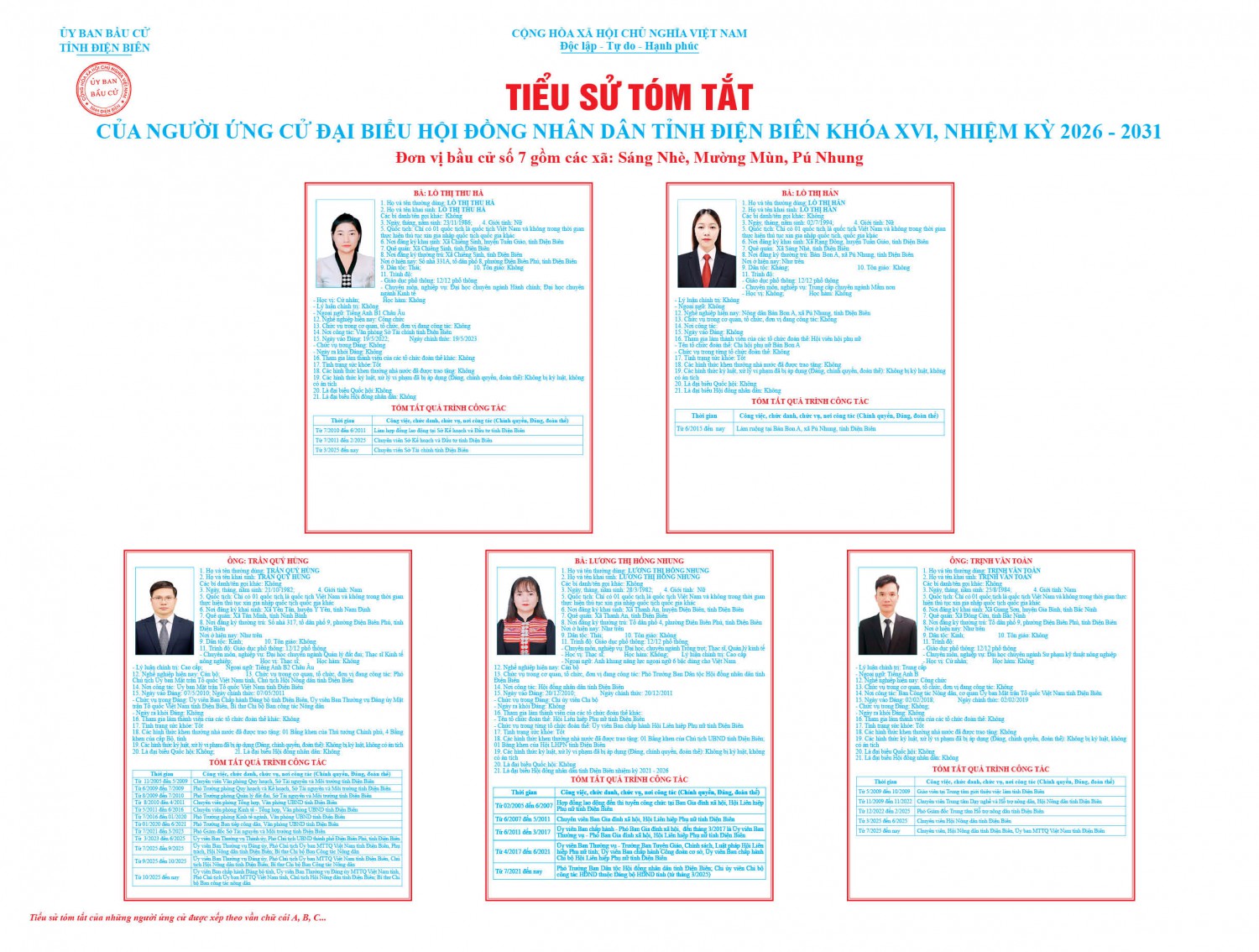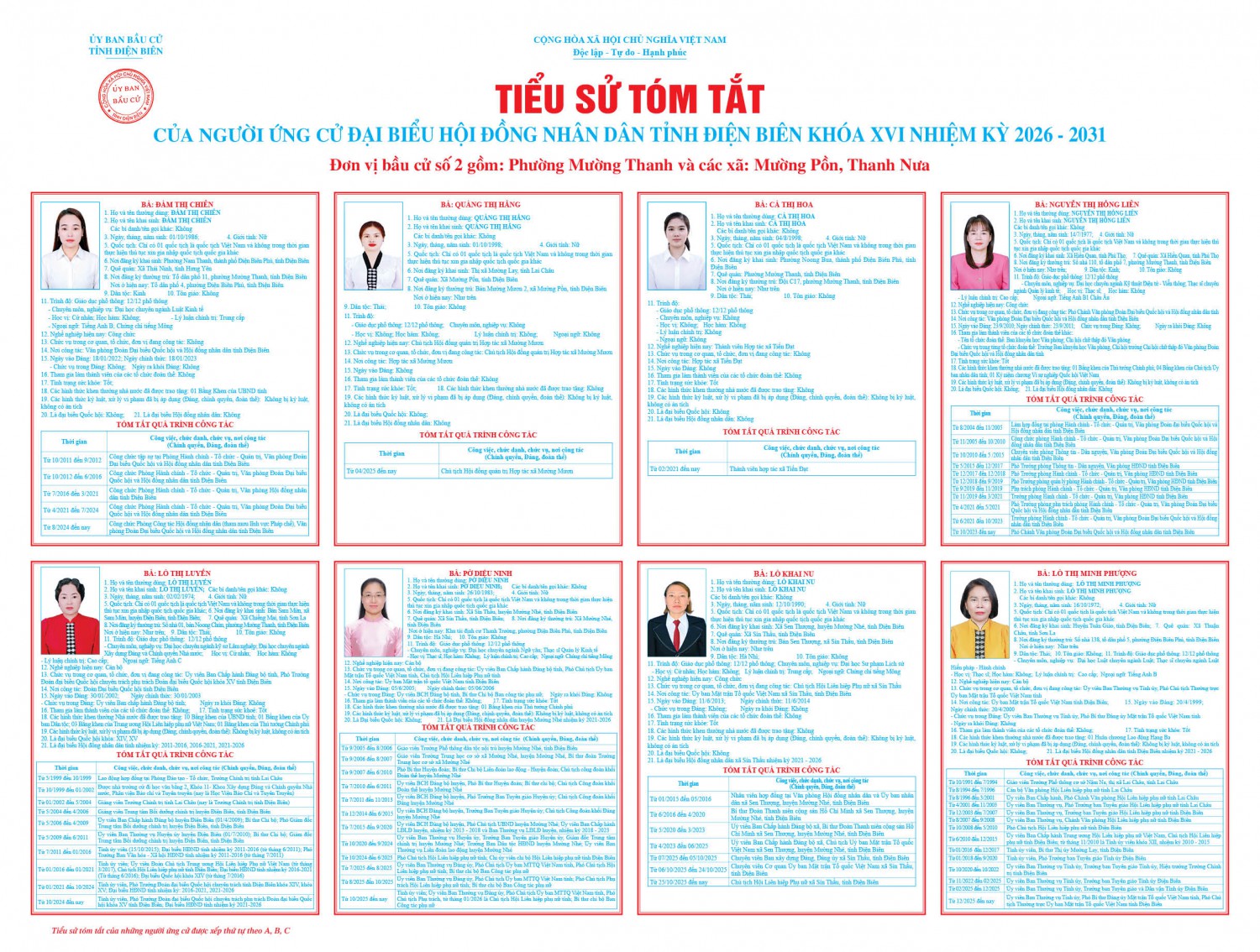 Trang Thông tin điện tử Sở Nội vụ trân trọng đăng tải tiểu sử tóm tắt của người ứng cử đại biểu HĐND tỉnh Điện Biên khóa XVI nhiệm kỳ 2026-2031 theo từng đơn vị bầu cử để cử tri theo dõi, tìm hiểu và thực hiện quyền bầu cử theo quy định.