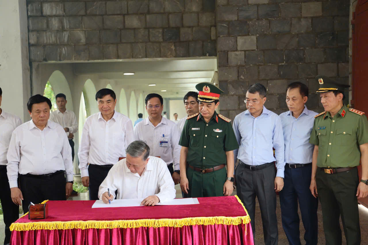 Ảnh: Tổng Bí thư Tô Lâm viết lưu niệm tại Nghĩa Trang Liệt sĩ A1