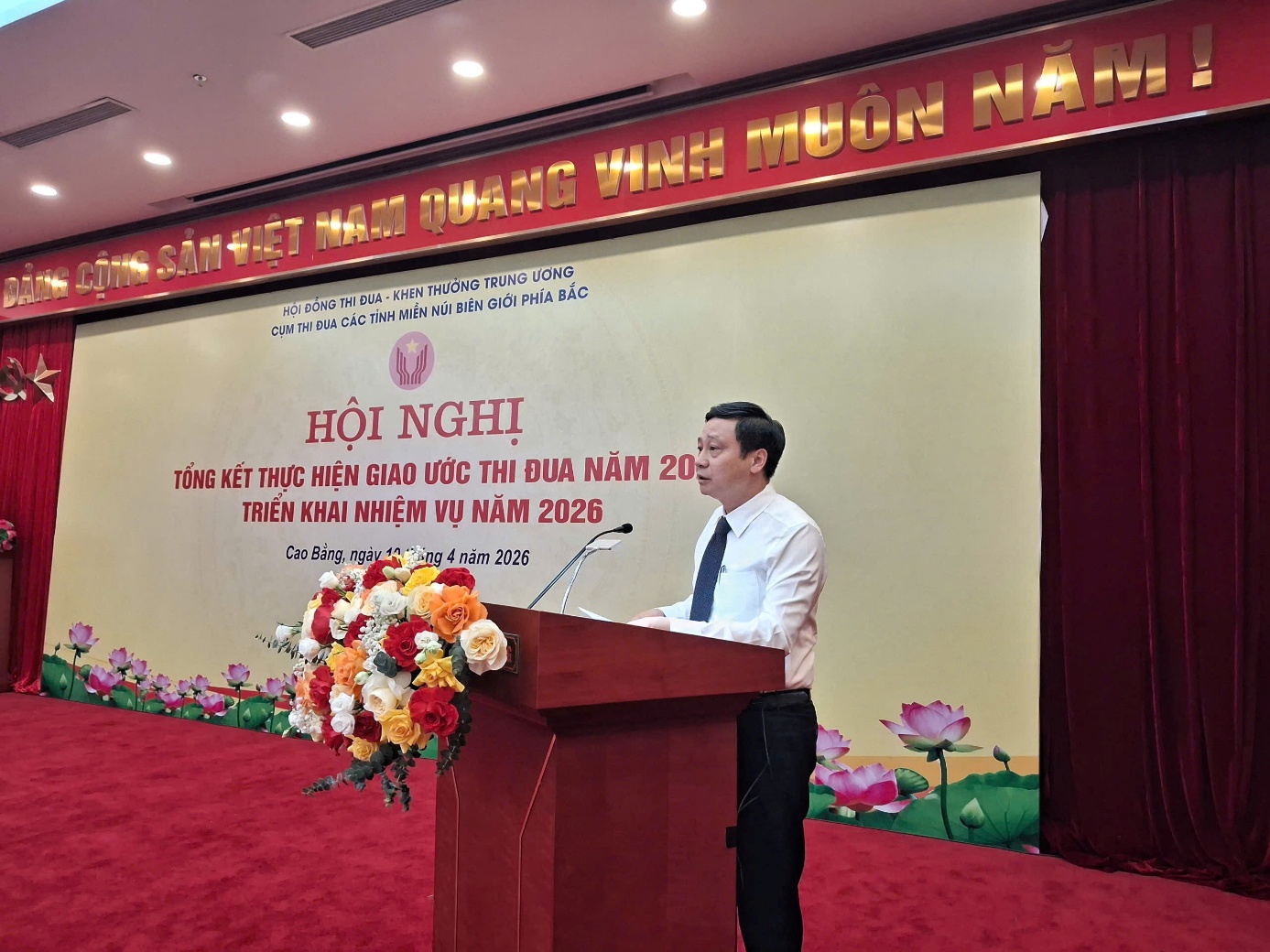 Phát biểu chỉ đạo, đồng chí Phạm Đức Toàn, Phó Trưởng ban Thi đua - Khen thưởng Trung ương ghi nhận và đánh giá cao những kết quả đạt được trong công tác thi đua, khen thưởng của Cụm thi đua các tỉnh miền núi phía Bắc năm 2025, đồng thời nhấn mạnh năm 2026 là năm có ý nghĩa quan trọng, mở đầu triển khai Nghị quyết Đại hội XIV của Đảng. Trong thời gian tới, đề nghị các địa phương tiếp tục quán triệt, thực hiện hiệu quả các chủ trương của Đảng, chỉ đạo của Tổng Bí thư Tô Lâm và các phong trào thi đua do Thủ tướng Chính phủ Phạm Minh Chính phát động; tập trung hoàn thiện thể chế, chính sách về thi đua, khen thưởng; đổi mới nội dung, hình thức tổ chức phong trào thi đua gắn với nhiệm vụ chính trị và các khâu đột phá của địa phương, lấy hiệu quả công việc và mức độ hài lòng của người dân, doanh nghiệp làm thước đo; đồng thời nâng cao chất lượng công tác khen thưởng bảo đảm kịp thời, chính xác, công khai, minh bạch, chú trọng khen thưởng người lao động trực tiếp và các điển hình tiên tiến, qua đó góp phần lan tỏa sâu rộng phong trào thi đua yêu nước, tạo động lực thúc đẩy phát triển kinh tế - xã hội trong giai đoạn tới.