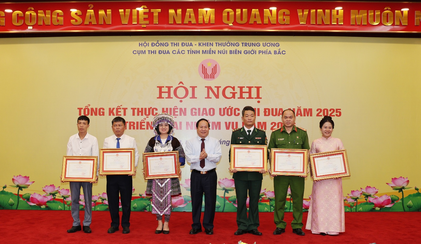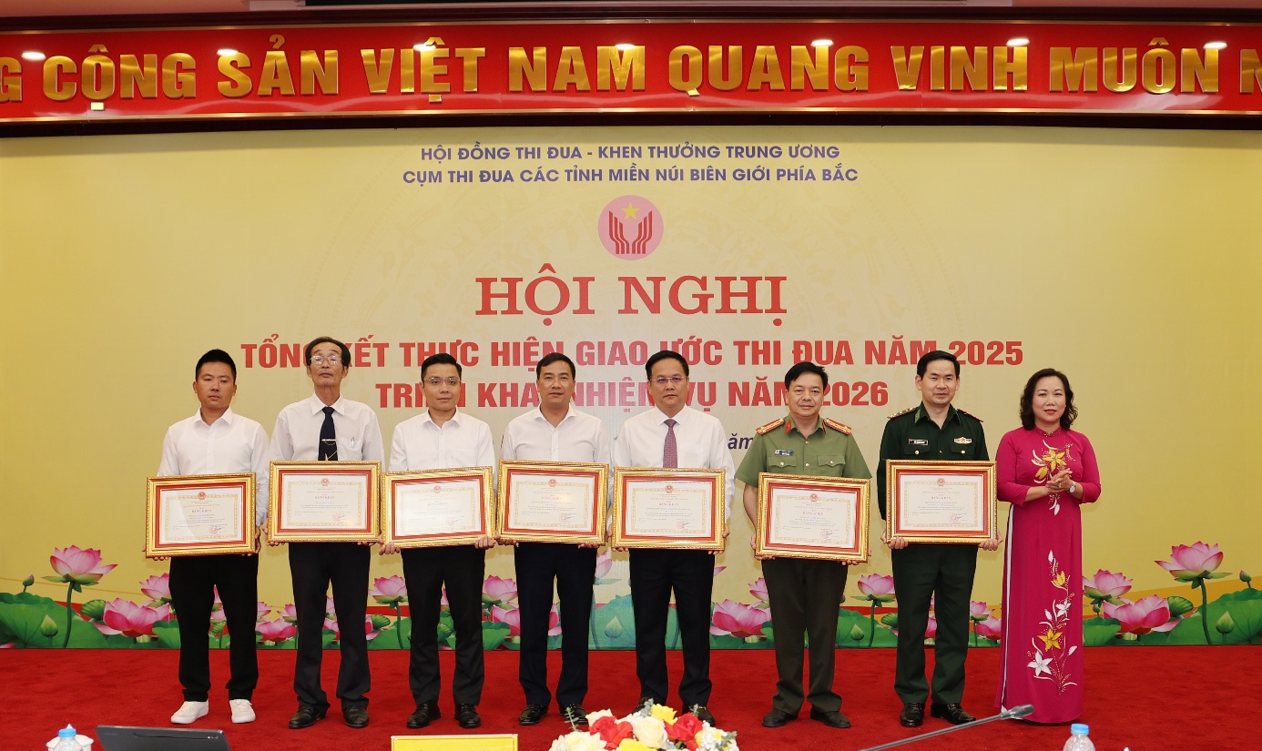 Đại diện lãnh đạo các tỉnh trong Cụm thi đua các tỉnh miền núi biên giới phía Bắc đã ký kết giao ước thi đua năm 2026. Nội dung giao ước tập trung triển khai hiệu quả các phong trào thi đua gắn với nhiệm vụ phát triển kinh tế - xã hội, bảo đảm quốc phòng – an ninh; đồng thời đẩy mạnh cải cách hành chính, chuyển đổi số và nhân rộng các điển hình tiên tiến. Năm 2026, các tỉnh trong Cụm tiếp tục triển khai hiệu quả các chủ trương của Đảng, chính sách pháp luật của Nhà nước về thi đua, khen thưởng; đẩy mạnh các phong trào thi đua trọng tâm do Thủ tướng Chính phủ phát động, nhất là phong trào “Đổi mới sáng tạo, phát triển khoa học công nghệ, chuyển đổi số, chuyển đổi xanh” và “Phát triển mạnh doanh nghiệp tư nhân, nâng cao hiệu quả doanh nghiệp nhà nước”… góp phần tạo động lực tăng trưởng mới cho khu vực miền núi, biên giới.