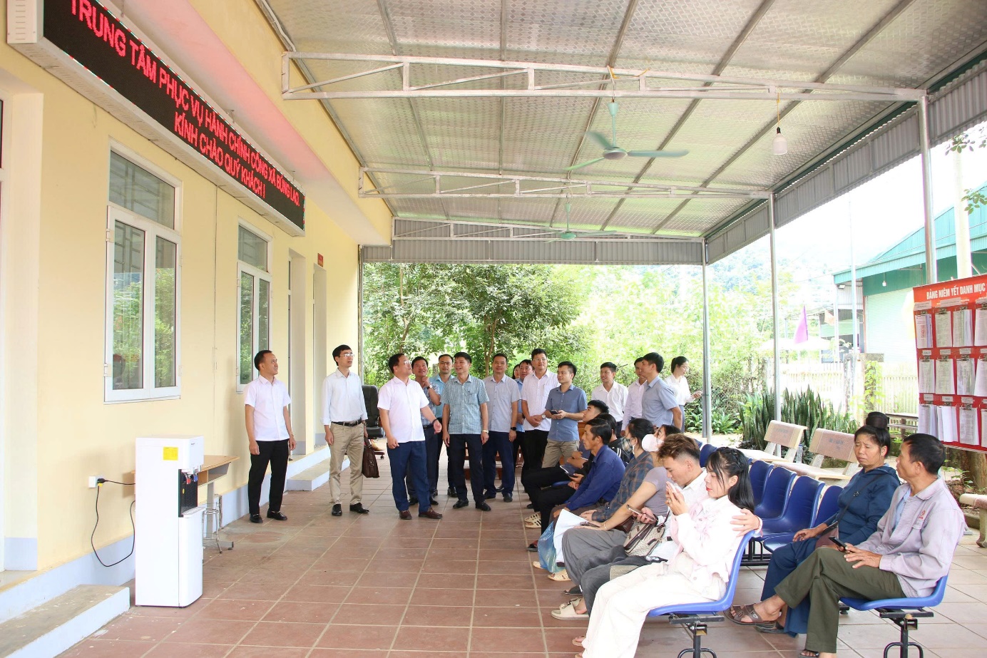 Ảnh: Đoàn công tác kiểm tra cơ ở vật chất, trang thiết bị trung tâm phục vụ hành chính công cấp xã trong quá trình làm việc với các xã