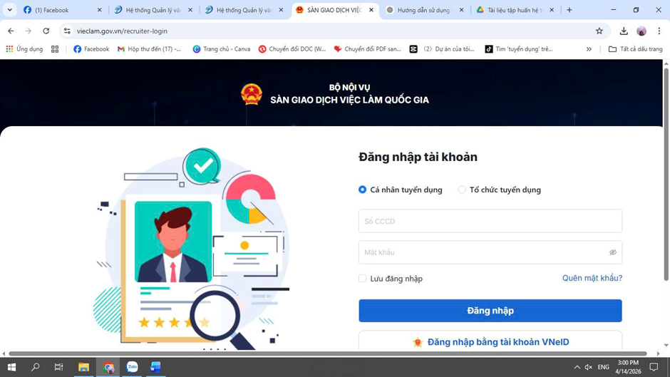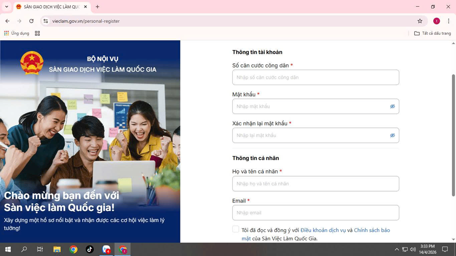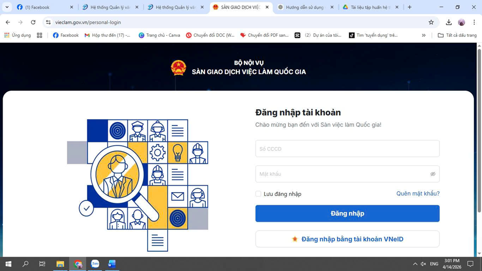 Nhằm tăng cường ứng dụng công nghệ thông tin trong kết nối cung – cầu lao động, ngày 14/4/2026 Bộ Nội vụ đã khai trương Cổng thông tin việc làm quốc gia tại địa chỉ “vieclam.gov.vn” là công cụ quan trọng kết nối người lao động và doanh nghiệp trong thời kỳ chuyển đổi số, giúp người lao động và doanh nghiệp thực hiện các thủ tục tìm việc, tuyển dụng một cách nhanh chóng, minh bạch và hiệu quả. Việc sử dụng hiệu quả hệ thống sẽ góp phần: Nâng cao cơ hội việc làm cho người lao động, giúp doanh nghiệp tuyển dụng nhanh chóng, đúng nhu cầu, tăng tính minh bạch của thị trường lao động
