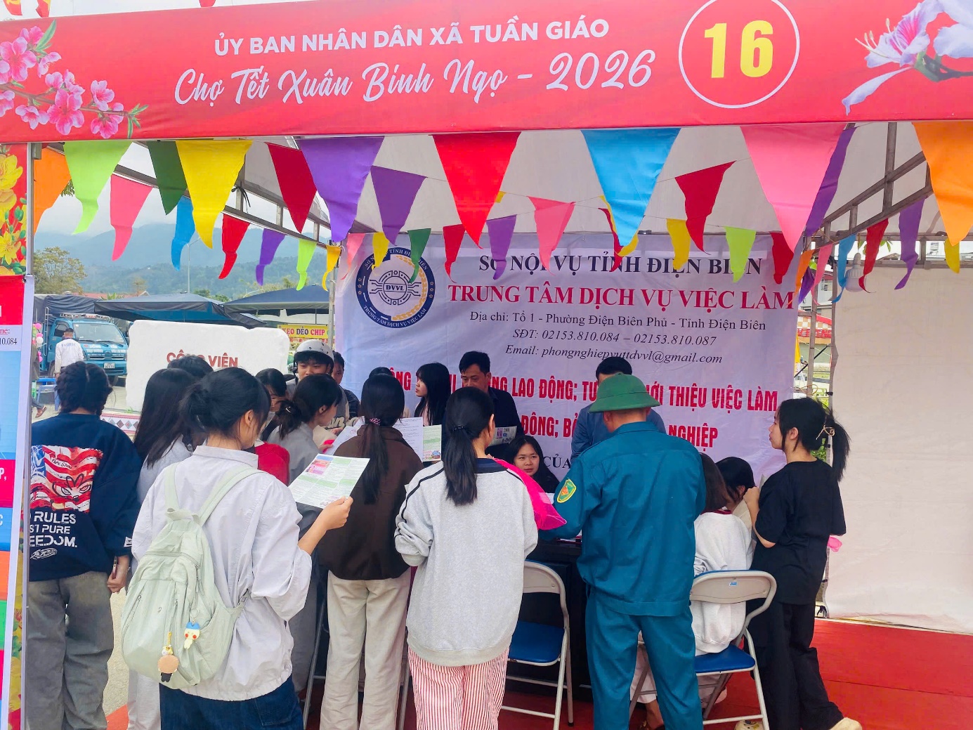 Tham gia Chợ Tết trong 03 ngày từ ngày 10 đến ngày 12/02/2026, Trung tâm Dịch vụ việc làm tỉnh Điện Biên đã mang đến một gian hàng tư vấn việc làm, học nghề, Bảo hiểm thất nghiệp đầy tính nhân văn, góp phần lan tỏa thông điệp “Việc làm bền vững – An sinh lâu dài” đến với người lao động.