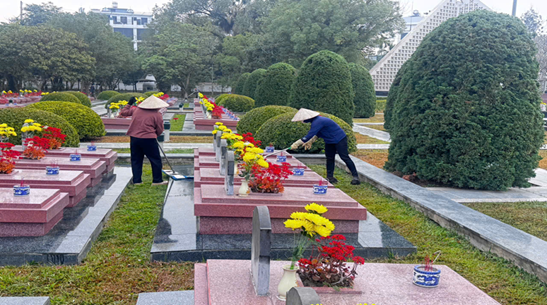 Trong không khí tưng bừng chuẩn bị đón năm mới, Trung tâm tiếp đón nhân nhân Liệt sỹ và điều dưỡng người có công với cách mạng và nhiều đoàn công tác, đơn vị lực lượng vũ trang, Trung đoàn 82- Sư đoàn 355, các đơn vị, trường học, tổ chức đoàn thể tổ chức hoạt động dâng hương, vệ sinh, khuôn viên nghĩa trang Liệt sỹ.