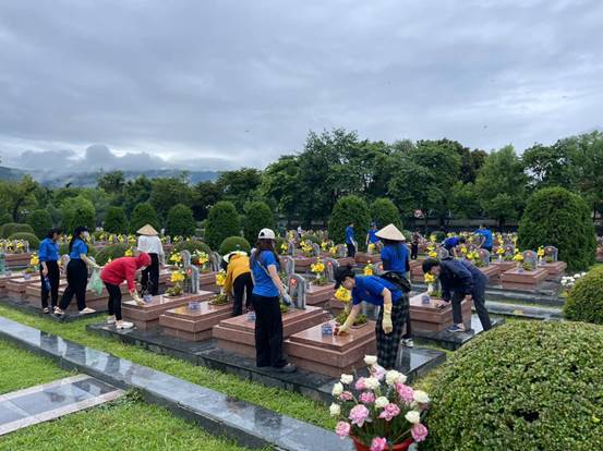 Những bia mộ của các Liệt sỹ được lau sạch sẽ, nhắc nhở thế hệ hôm nay về cái giá trị của Độc lập - Tự do đó là cách tri ân thiết thực, bền bỉ – để ký ức không phai mờ và lịch sử được tiếp nối bằng hành động.