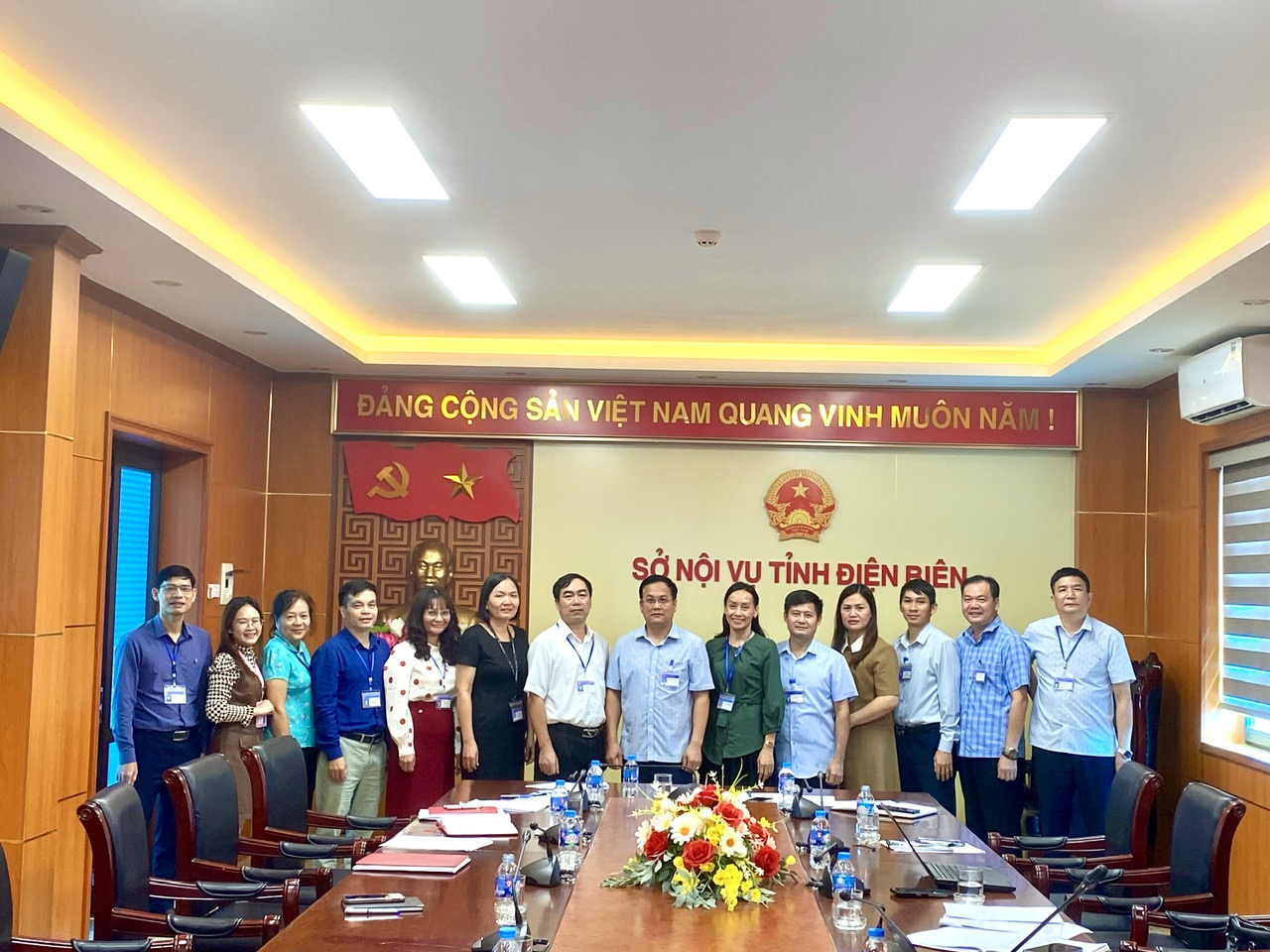 Ban Giám đốc Sở Nội vụ tỉnh Điện Biên cùng các Trưởng phòng, ban, đơn vị sau khi hoàn tất nghi thức ký kết, thể hiện sự cam kết mạnh mẽ từ cấp lãnh đạo