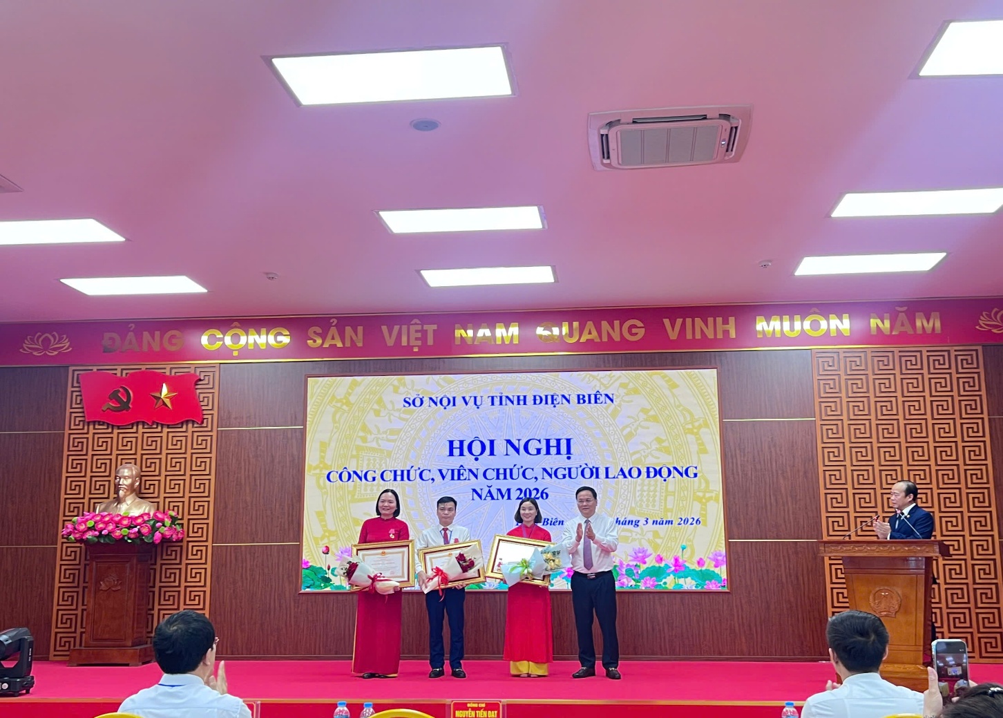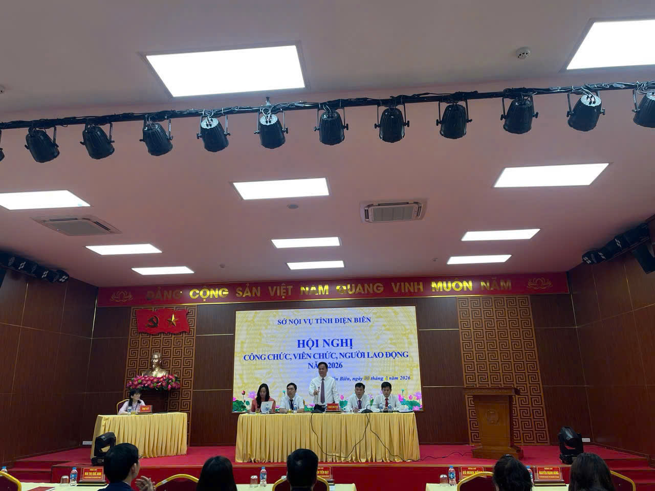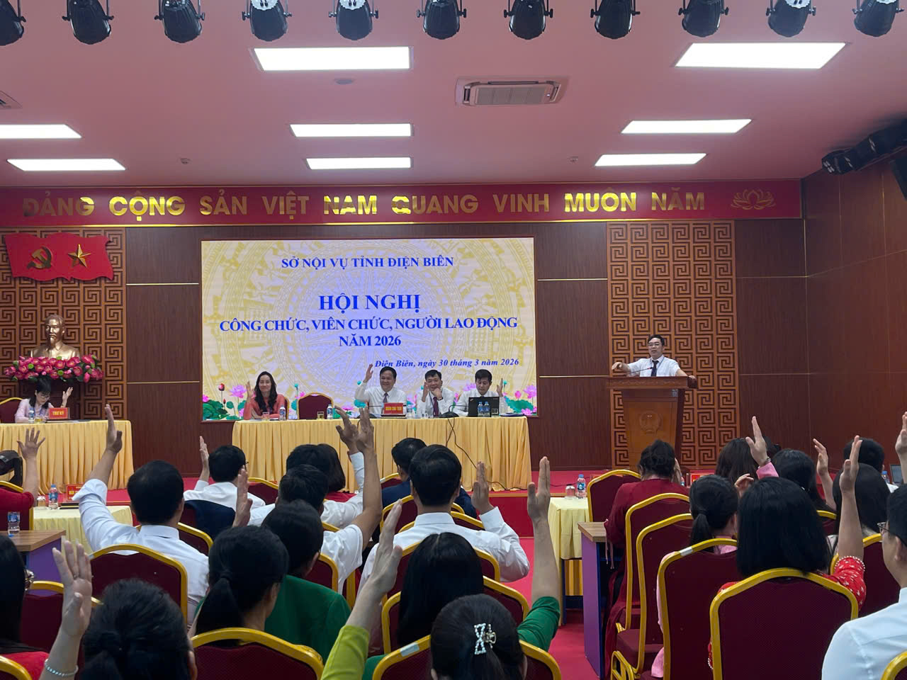 Sáng ngày 30/3/2026, Sở Nội vụ tỉnh Điện Biên tổ chức Hội nghị công chức, viên chức, người lao động năm 2026. Dự và chủ trì Hội nghị có đồng chí Nguyễn Tiến Đạt - Tỉnh uỷ viên, Bí thư Đảng ủy, Giám đốc Sở Nội vụ, cùng các đồng chí trong Ban thường vụ Đảng uỷ, Lãnh đạo Sở Nội vụ; tham dự Hội nghị có toàn thể công chức, viên chức, người lao động của Sở Nội vụ.