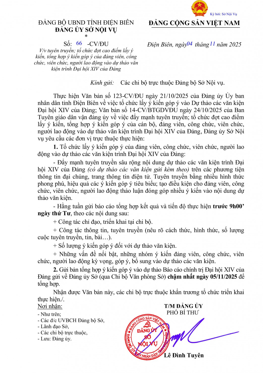 Sở Nội vụ tuyên truyền, tổ chức lấy ý kiến ý kiến góp ý của đảng viên, công chức, viên chức, người lao động vào dự thảo văn kiện trình Đại hội XIV của Đảng.