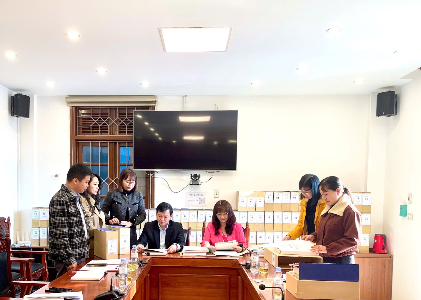 Trong quá trình thẩm định, Đoàn Thẩm định đã tiến hành kiểm tra, đối chiếu hồ sơ với mục lục, xem xét nội dung, hình thức, tình trạng bảo quản và thời hạn bảo quản của từng hồ sơ. Kết quả cho thấy, toàn bộ hồ sơ, tài liệu thuộc các nhóm tài liệu hành chính (tập lưu); tài liệu tài chính, kế toán, tài liệu quy hoạch; tài liệu tổng hợp, tài liệu về thi đua - khen thưởng cơ bản đáp ứng đúng quy định của pháp luật về lưu trữ; đủ điều kiện nộp lưu vào Lưu trữ lịch sử tỉnh.