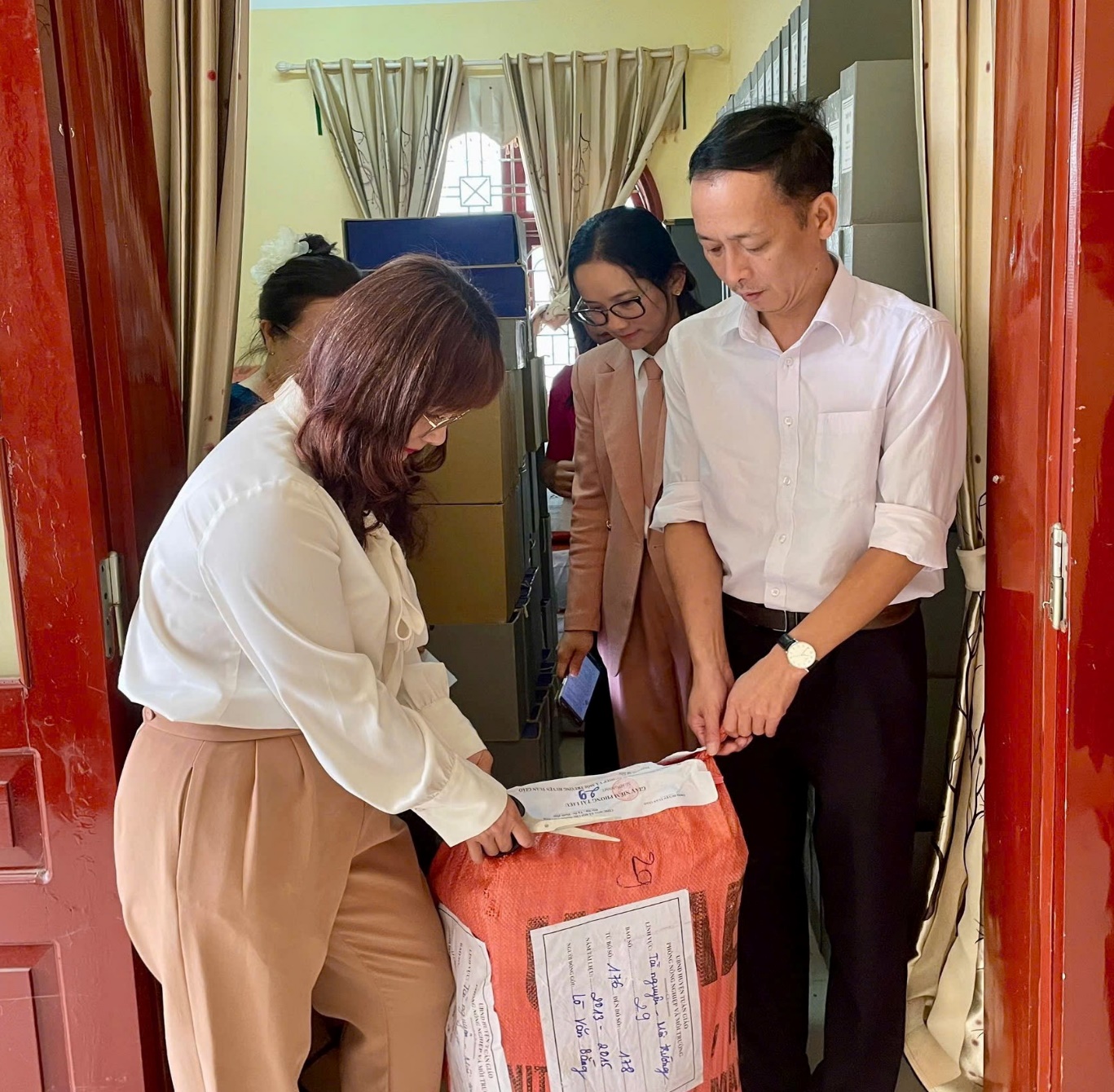 Vừa qua, Trung tâm Lưu trữ lịch sử đã phối hợp với UBND xã Tuần Giáo tổ chức mở niêm phong hồ sơ, tài liệu lưu trữ tại kho lưu trữ của UBND xã nhằm phục vụ công tác quản lý và sử dụng tài liệu lưu trữ để phục vụ yêu cầu công tác của cơ quan có thẩm quyền. Trong quá trình triển khai, Trung tâm Lưu trữ lịch sử phối hợp chặt chẽ với xã, hướng dẫn thực hiện đúng quy trình nghiệp vụ, bảo đảm việc mở niêm phong, kiểm tra và sử dụng tài liệu được thực hiện theo đúng quy định của pháp luật về lưu trữ.