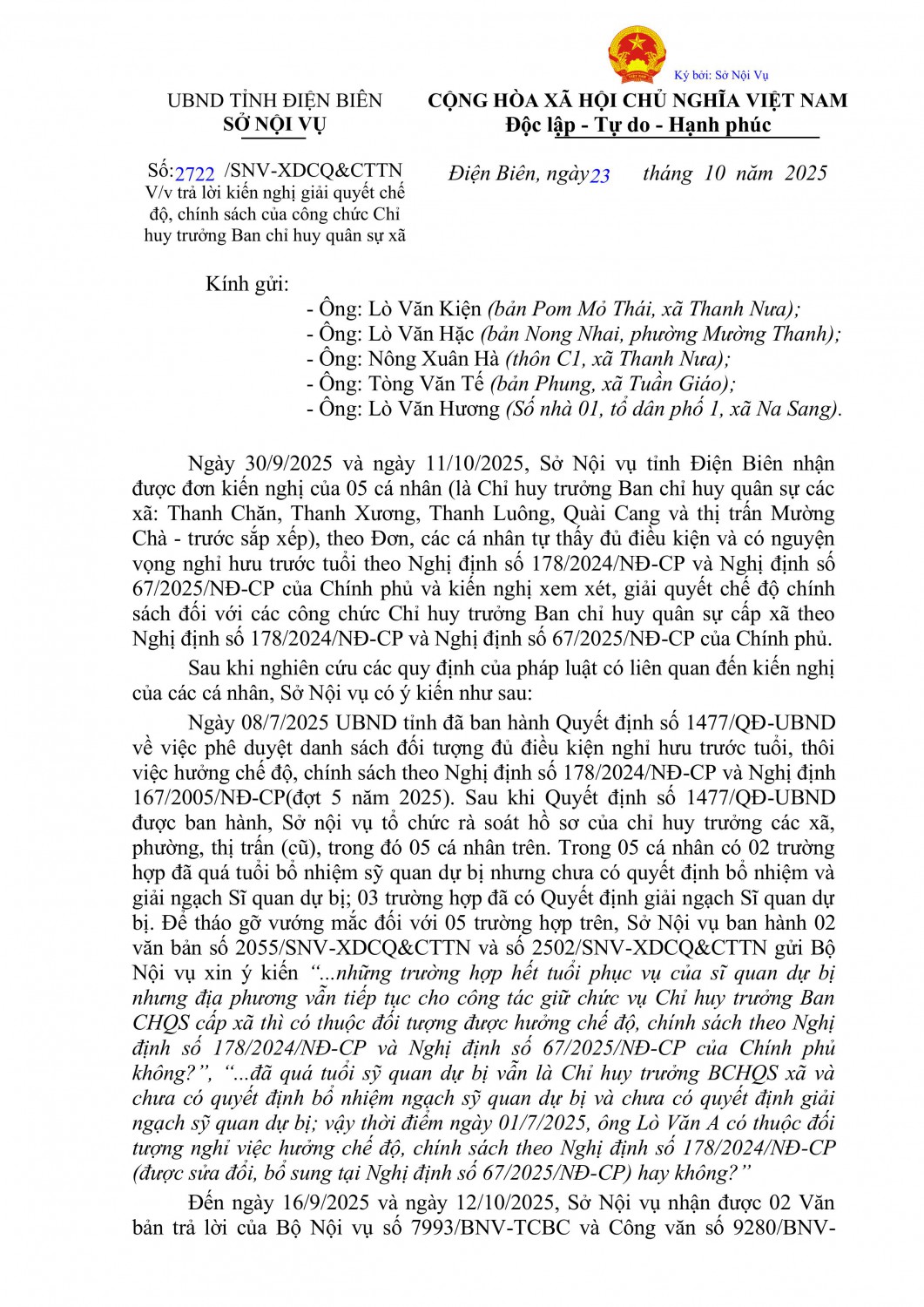 Sở Nội vụ trả lời kiến nghị giải quyết chế độ, chính sách của công chức Chỉ huy trưởng Ban chỉ huy quân sự xã.